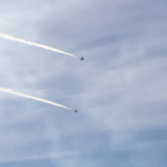 アクロバット飛行などの後に、逆光で見えづらいですがハート❤️