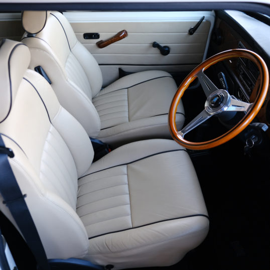 内装はケンジントンならではのブラックパイピングのコノリーレザーシート、英国車ムード満点ですね。