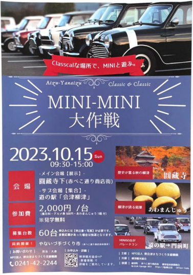 [MINI MINI 大作戦]という、ミニと柳津町のコラボレーションイベントが開催されます。
