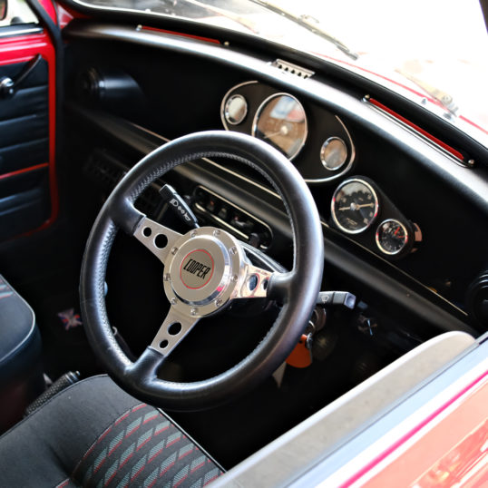 センターメーターとブラックインテリアでスポーティーなキャブクーパーとなっております。